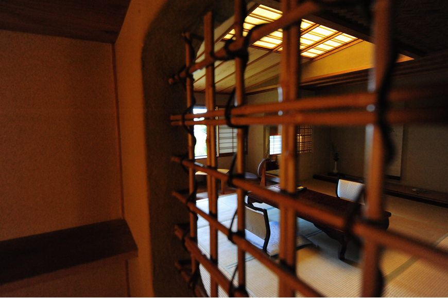 数寄屋の意匠美に満ちたしつらえと趣き。凛とした空間の質を持つ阿しか里の代名詞的客室です。10畳の本間に眺望豊かな広縁には、ゆったりとした椅子とテーブル。茶室意匠の天井、床の間、檜の内風呂、小さな化粧室と水屋もあり正統な数寄屋空間をゆっくりとご堪能いただけます。角部屋ならではの小窓から岩戸山を正面に配し、主窓から夜には幻想的にライトアップされる主庭園を見下ろし、遠くに箱根連山の稜線を見晴らせます。
